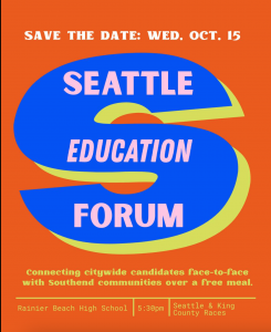 We are holding a Seattle Education Forum at Rainier Beach High School on October 15!