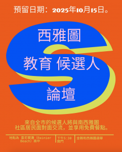 You are invited to share a free meal with the Seattle and King County Candidates and learn about their education platforms.